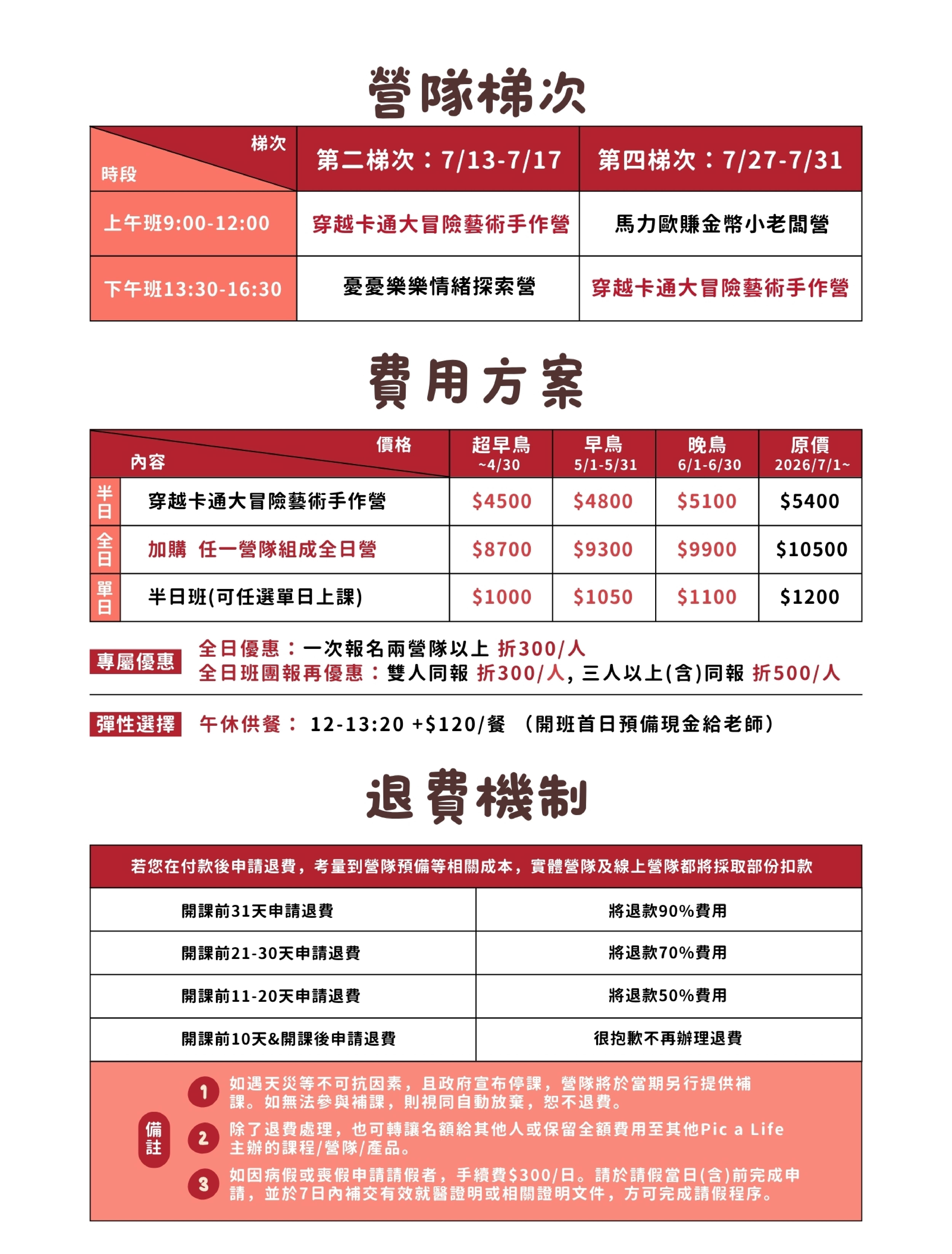 ※因名額與教材皆預留,恕無法退還單日學費。(退費規則請詳閱上方退費機制)