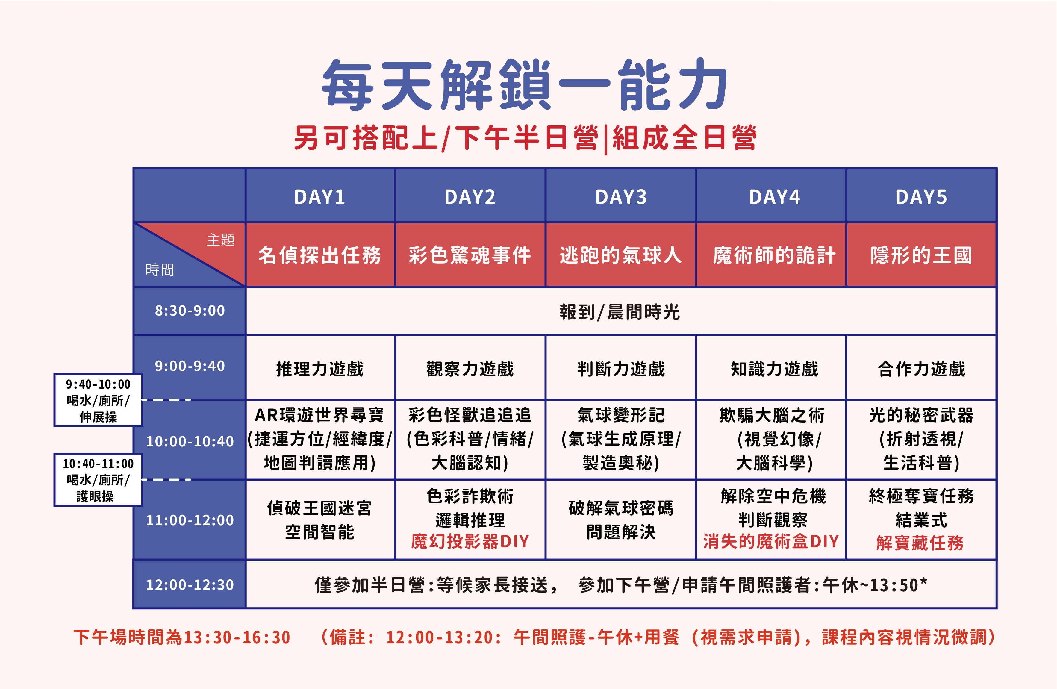 ➊ 學員報到時間為早上:8:20~9:00|家長接回時間為下午:17:00~17:30