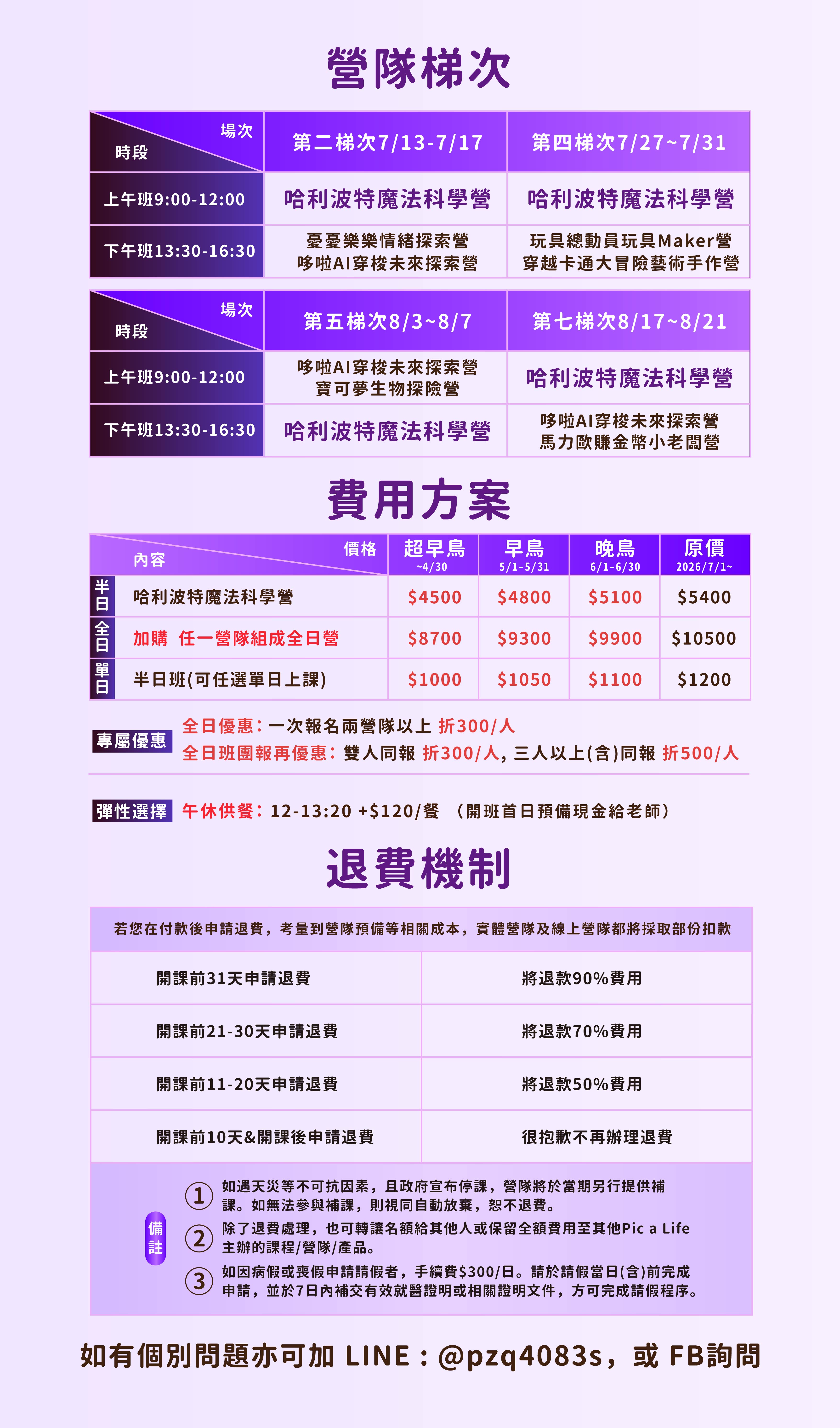 - 若營隊「未達開班人數」:我們會主動與聯繫,協助調整梯次或更換主題。