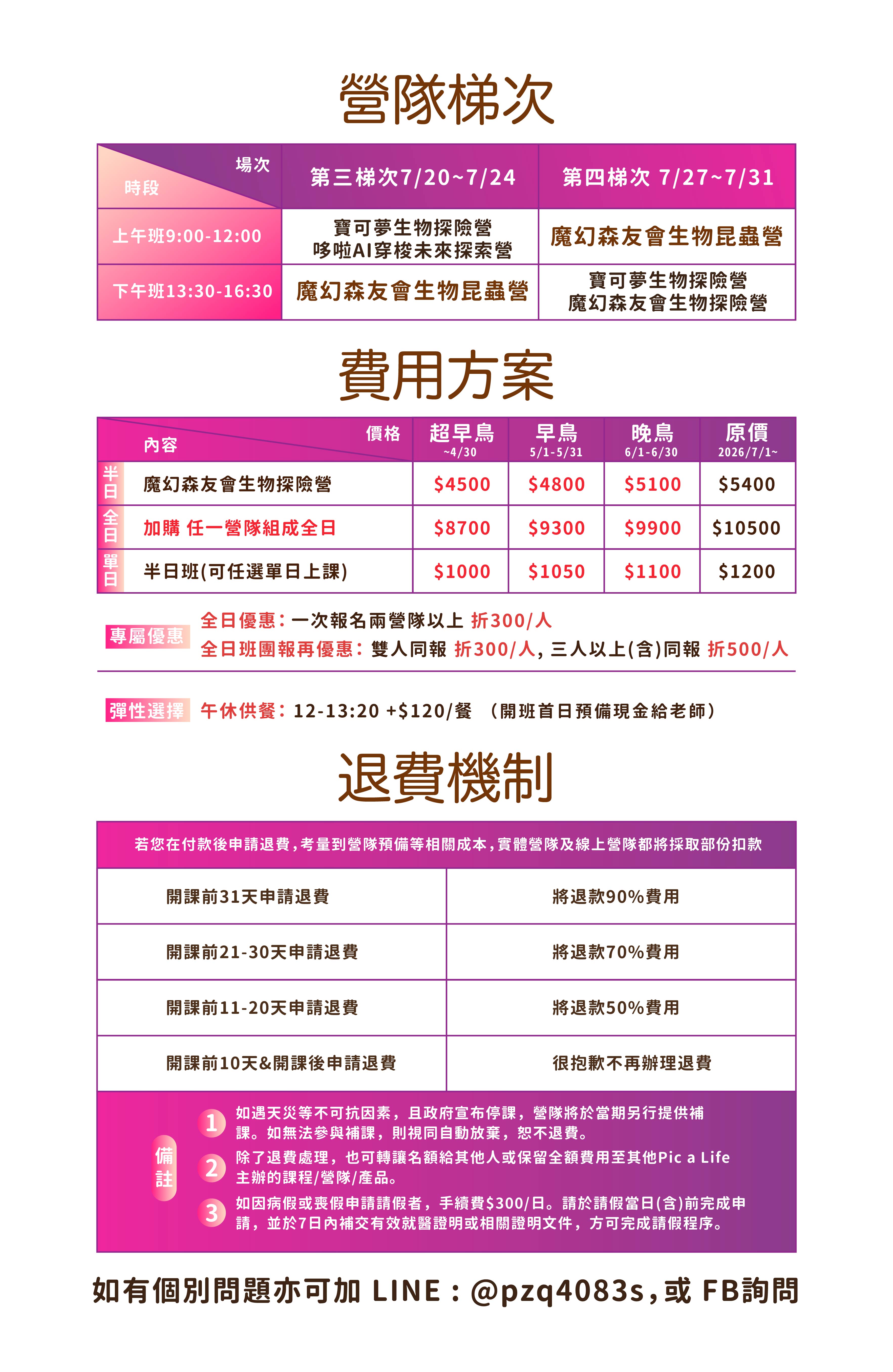 - 若營隊「未達開班人數」:我們會主動與聯繫,協助調整梯次或更換主題。