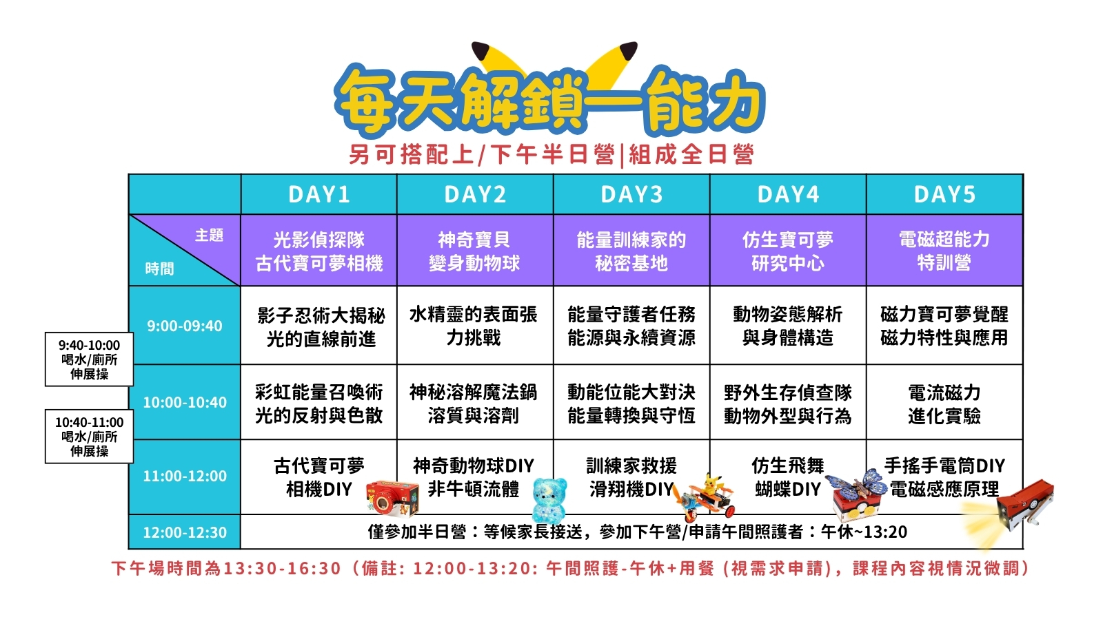 已結束-神奇寶貝勇闖玩美科學島-週末課程
