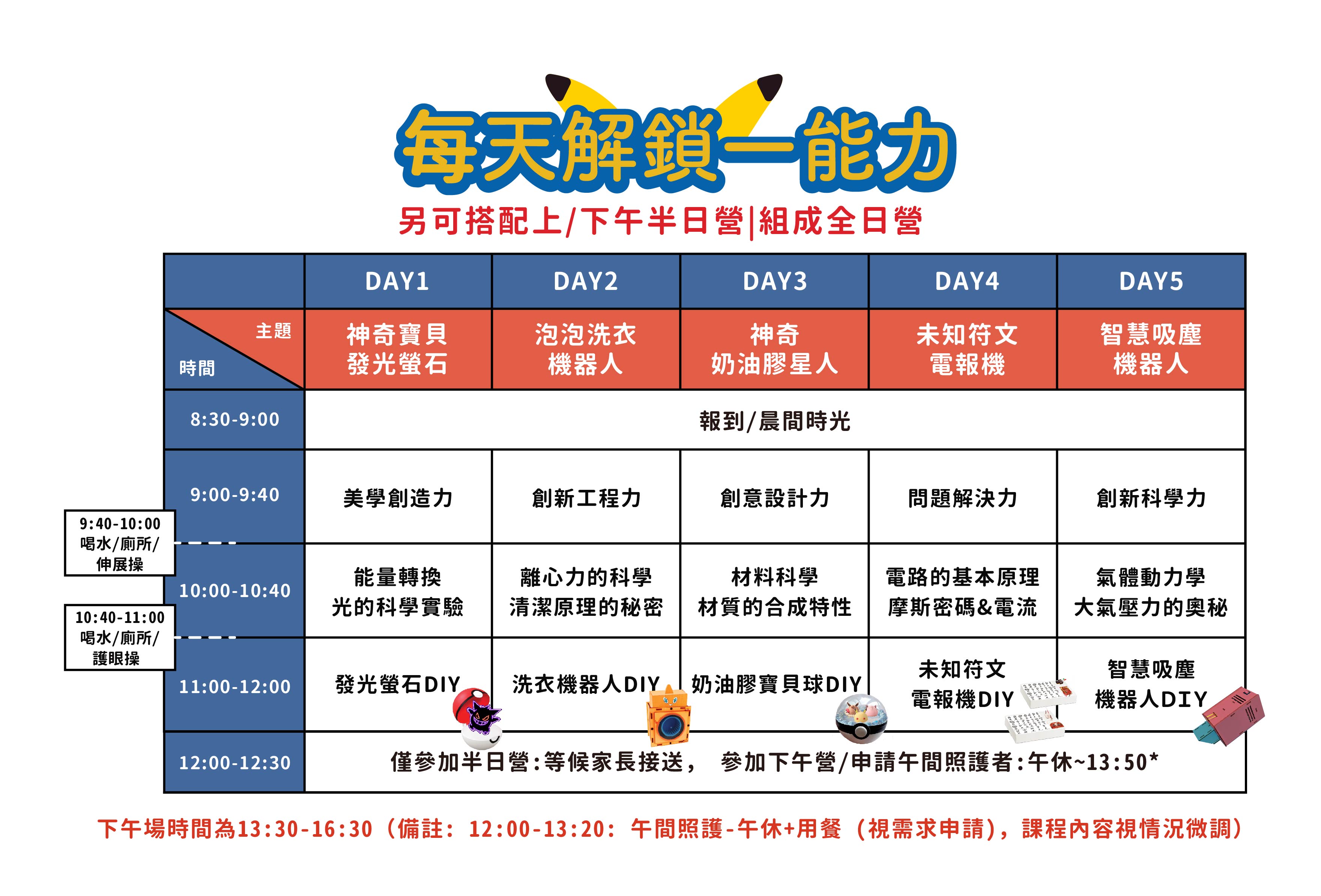 ➊ 學員報到時間為早上:8:20~9:00|家長接回時間為下午:17:00~17:30