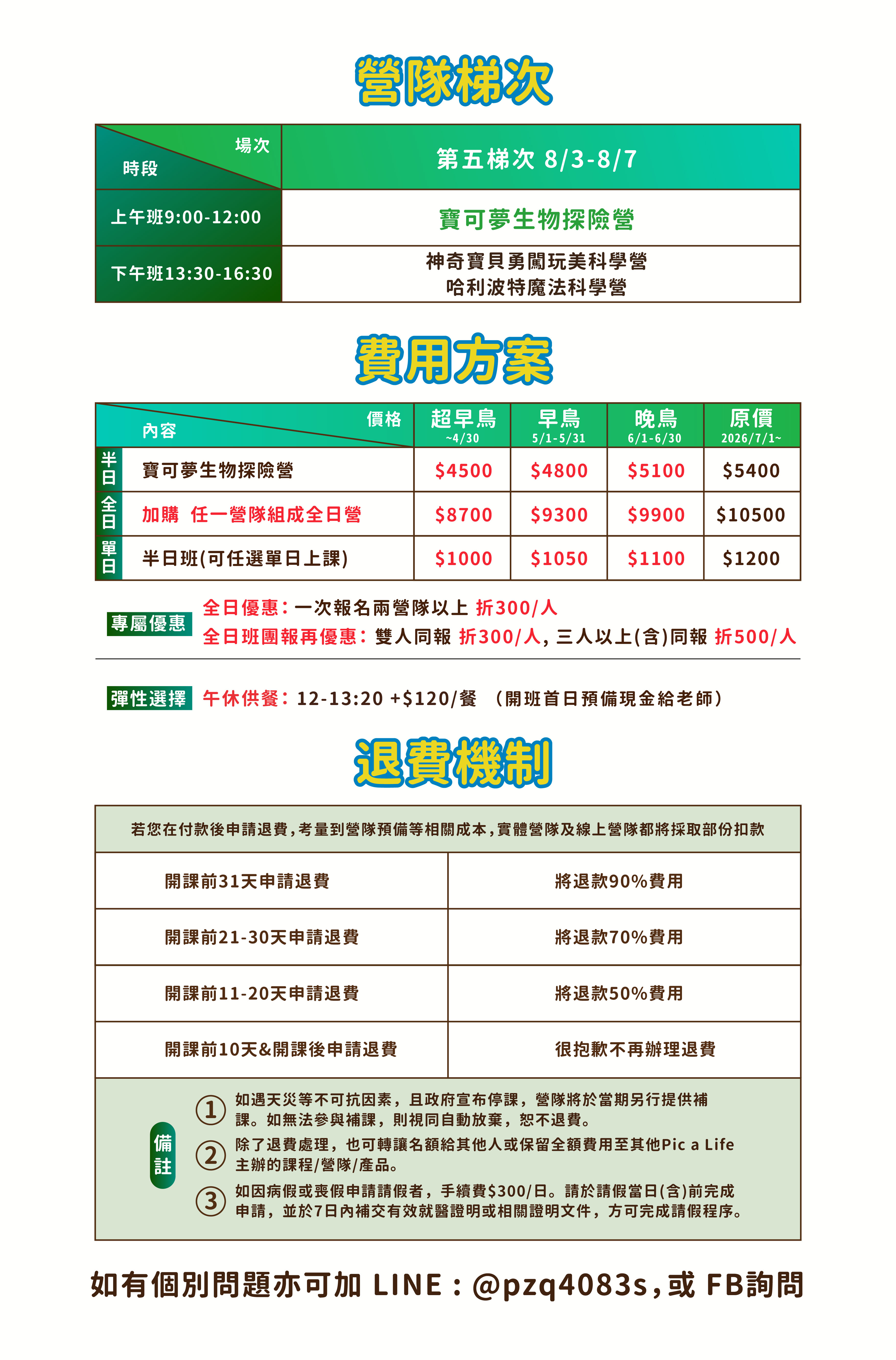 - 若營隊「未達開班人數」:我們會主動與聯繫,協助調整梯次或更換主題。