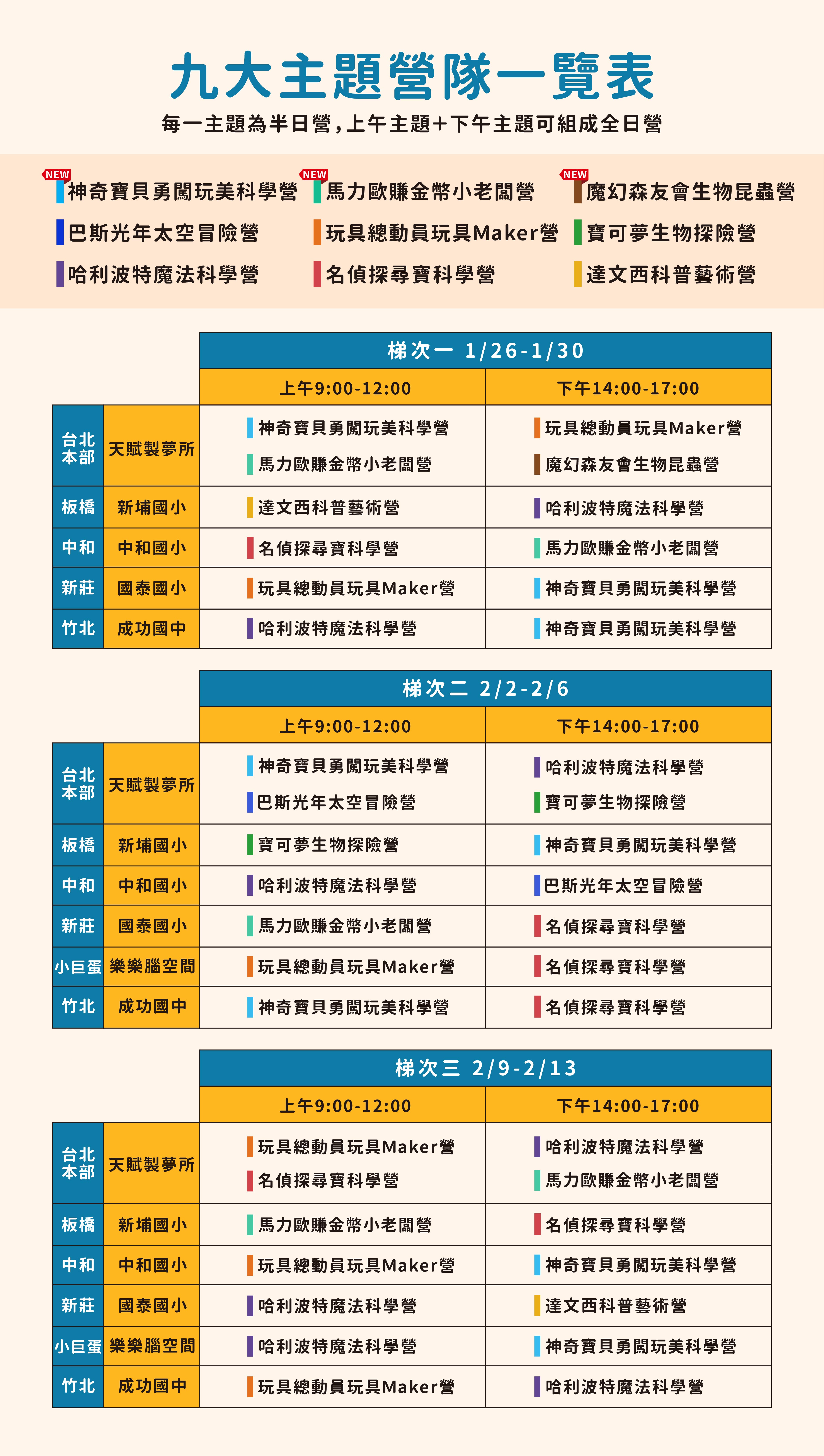 ➍ 由於營隊有最低開班人數6位,我們將於 12 月 20 日 左右 公布最終開班梯次與營隊,並自 12 月初與報名人數較少的營隊家長聯繫,協助調整校區、營隊或梯次。若報名營隊未開班,可透過 LINE 客服調整至其他梯次/營隊/校區,或選擇全額退款。