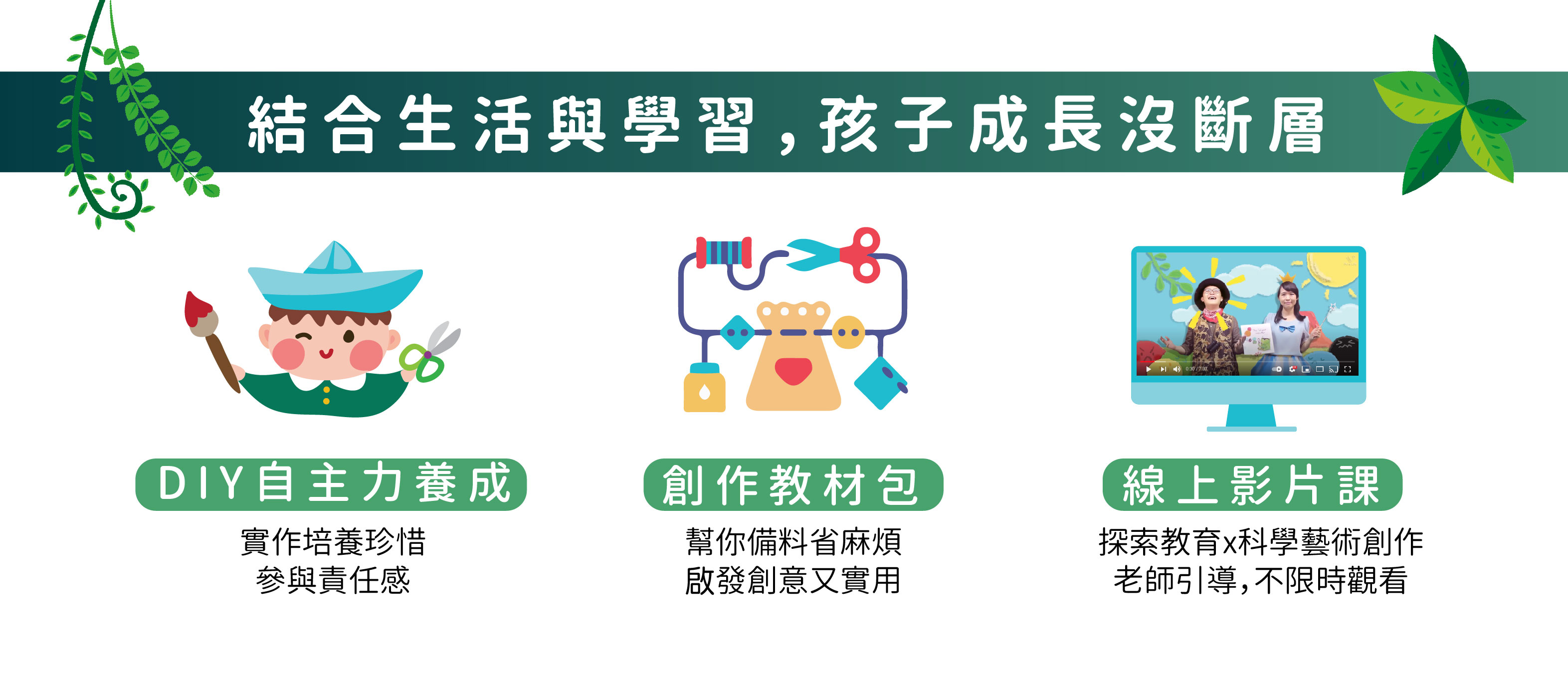 課程內容: 結合跨領域主題(科學觀察、藝術創意等),傳授知識並啟發靈感來藝術創作。培養孩子實踐做中學,也滿足108課綱的素養教育精神。