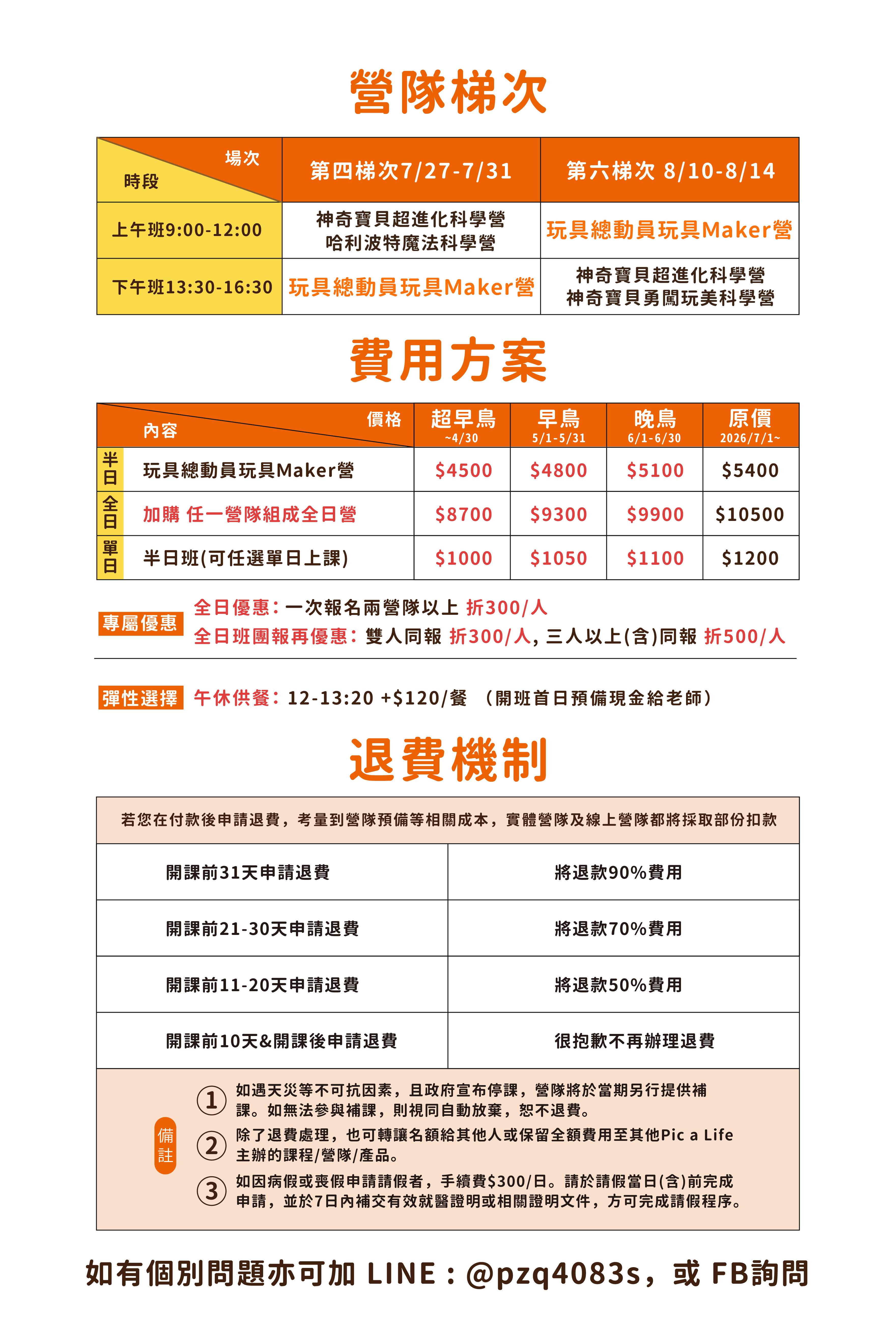 ※因名額與教材皆預留,恕無法退還單日學費。(退費規則請詳閱上方退費機制)