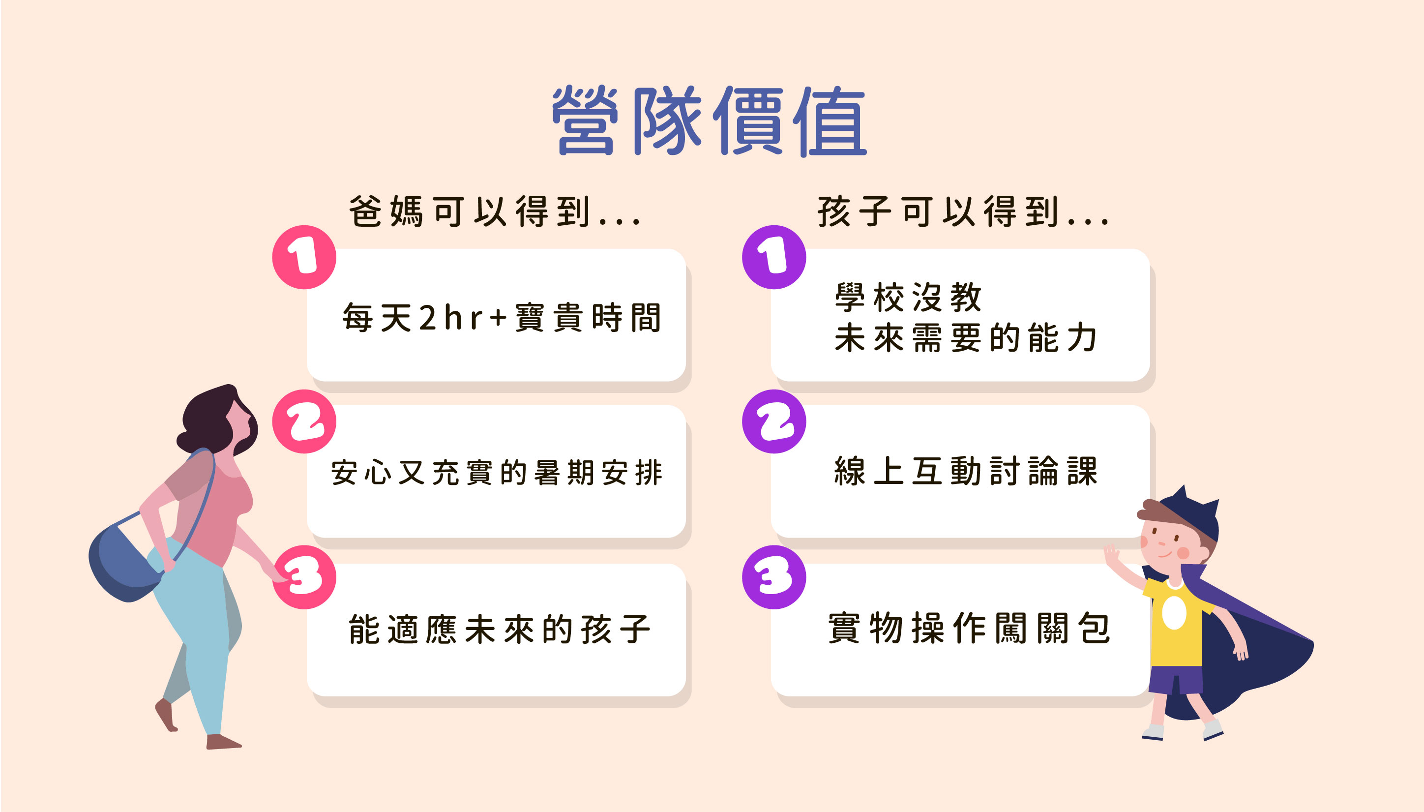 我們會使用方便孩子操作的線上平台,並於營隊開始前提供連結。建議每人使用電腦、麥克風、喇叭、視訊鏡頭,以確保最佳學習品質。